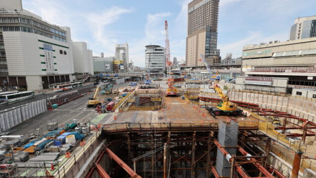 デッキの解体はまず駅前広場中央にあるデッキ花壇を先行させています。下部は覆っていたパネルは全て剥がされて鉄骨が剥き出しになっています。