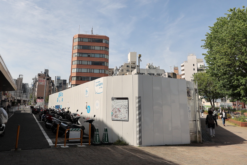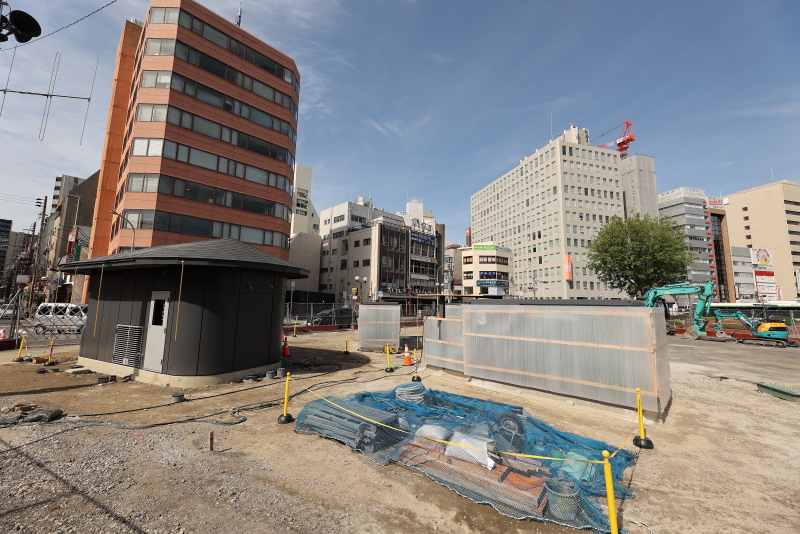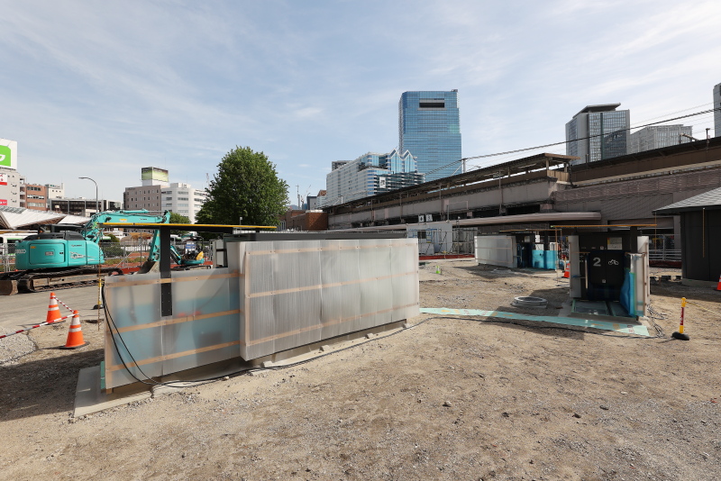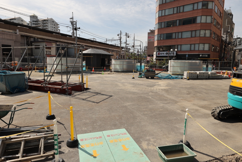 掘削重機は一旦、姿を消しました。これから堀り進めて山留の後、地下タワー式駐輪場の設置を開始するものと思われます。こちらは工事が完了後、次工程として、面積を縮小した新たなタクシーロータリーの整備が行われる予定です。