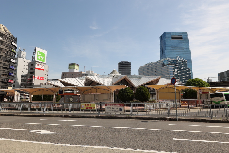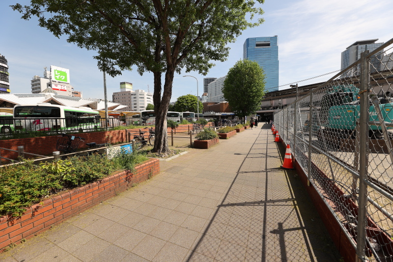南西側の駐輪場完成後にはいよいよ市バスターミナルの整備が開始されるのでしょうか。この整備工事も連鎖型で進められており、部分的に工事を行い、空いた土地を使って次のエリアの整備を行う計画です。