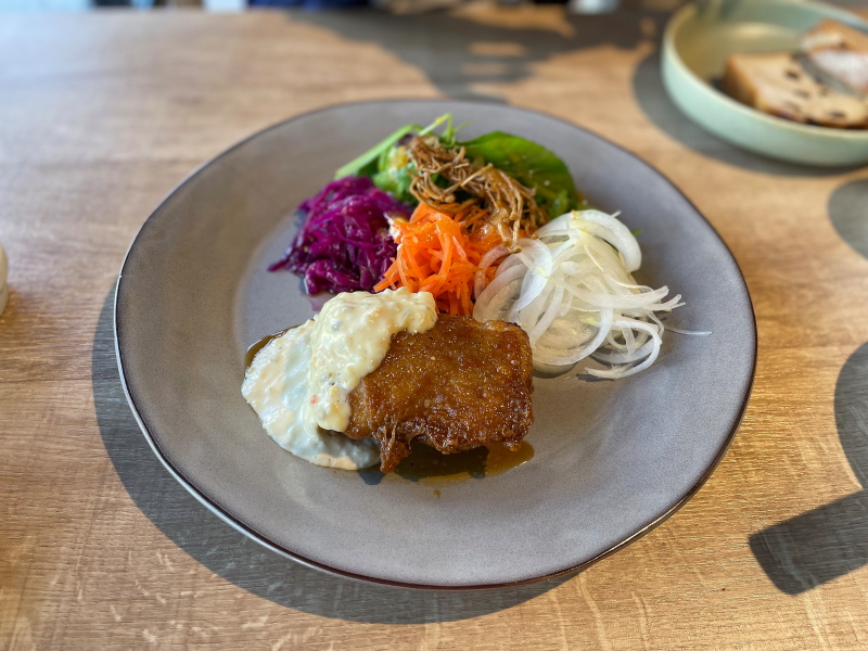 パートナーは鳥南蛮を選びました。タルタルとの相性が抜群でした。他にも唐揚げ、ローストビーフやポークが選べました。