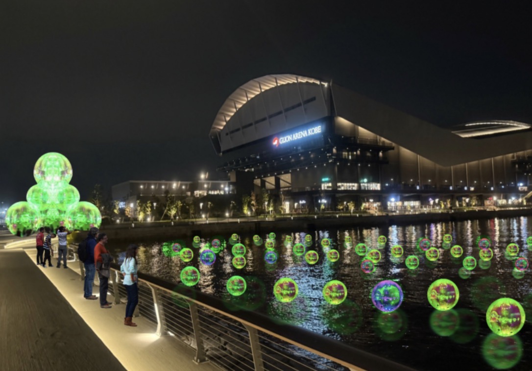 ペルー人彫刻家レンゾ・B・ラリヴィエールとオーストラリア人アーティストのザラ・パスフィールドが率いるAtelier Sisuが手掛けるイルミネーションアートが水域に浮かばせる光と音のイマーシブ作品で、バブル(泡)という視覚的形態を通じてはかなさと無常の概念を捉えているとの事。